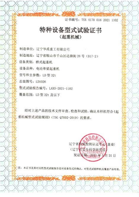 LDP電動單梁型式試驗合格證